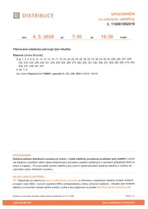 Odstávka elektřiny - 4.5.2026 horní konec obce