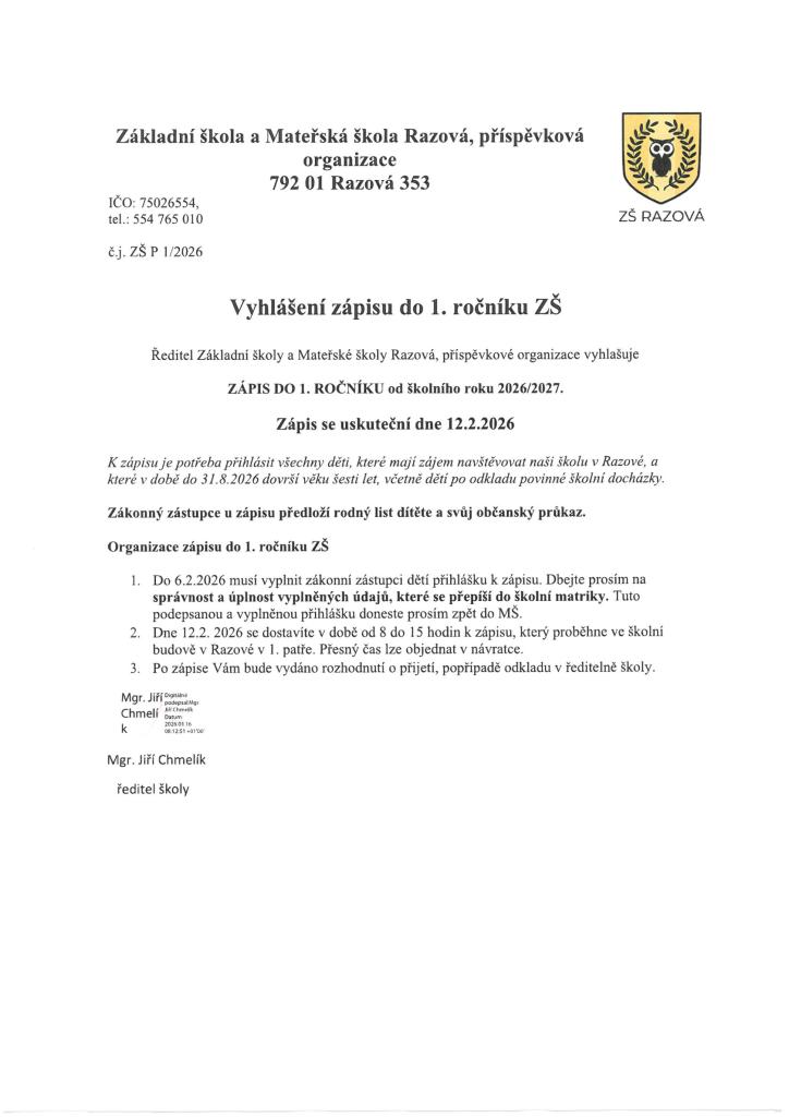 Zápis se uskuteční 12.2.2026