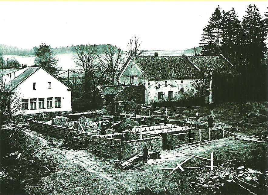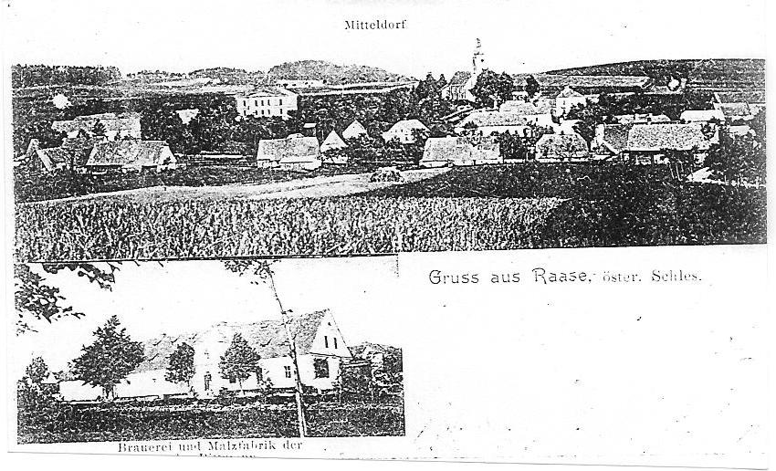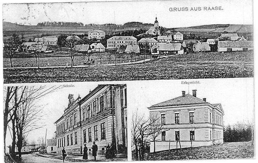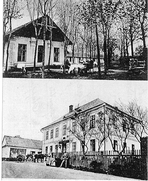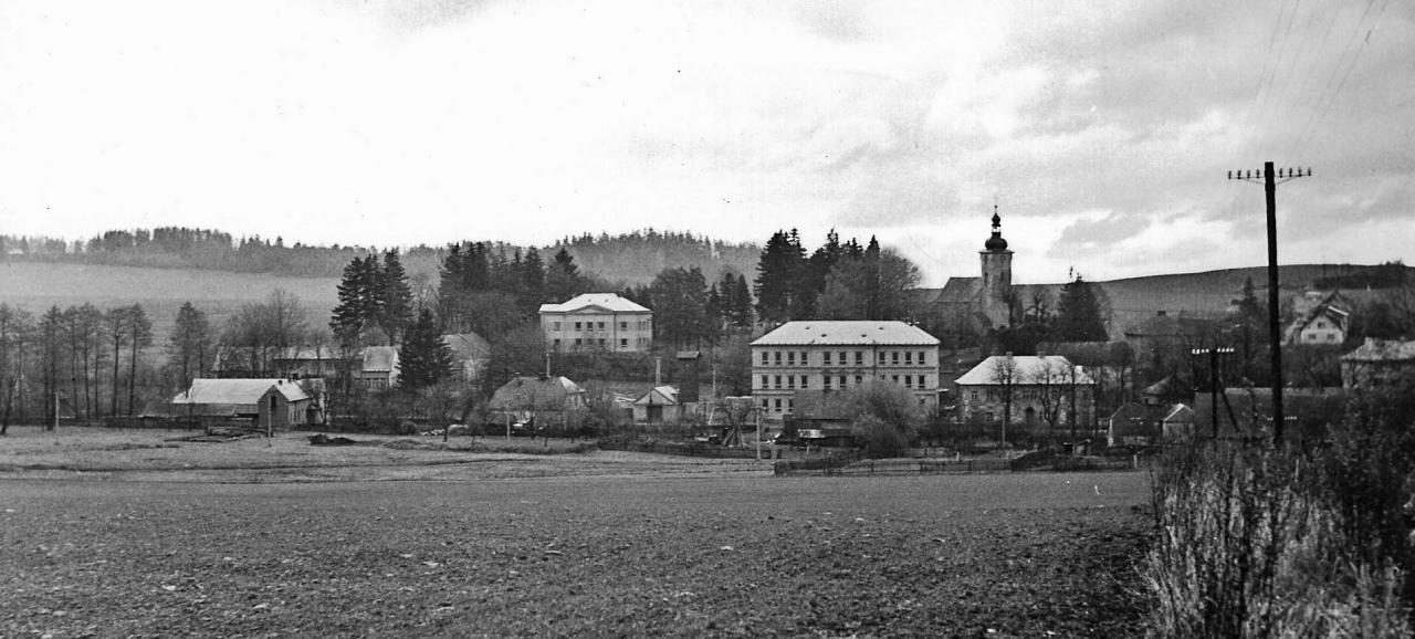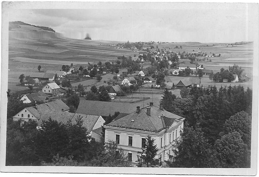 Střed obce, budova hostince z r. 1900, škola před přístavbou