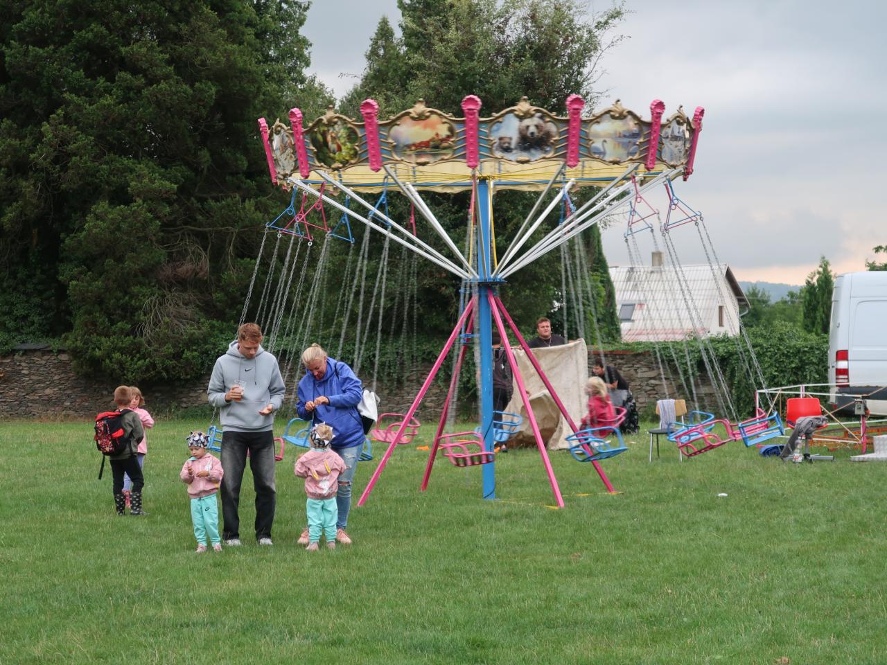 Střed obce, škola, zámeček